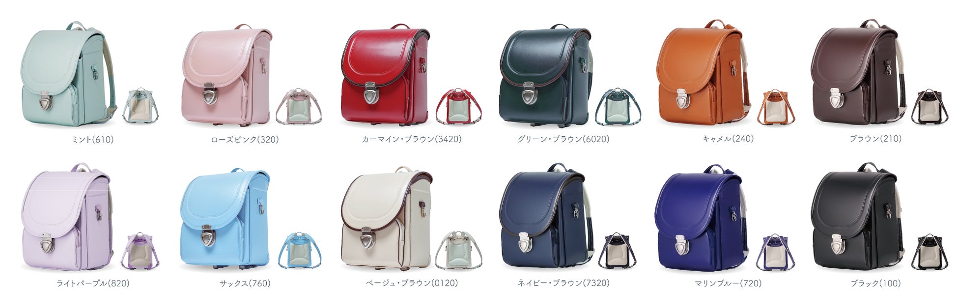 「パレット」は、性別にとらわれず自由に選べる12色展開のランドセルシリーズ。個性を尊重し、お子さま一人ひとりが「自分らしい色」を選べるよう、多彩なカラーバリエーションを用意しています。2026年度モデルでは、トレンドを取り入れた新色が加わり、より魅力的なラインナップとなりました。