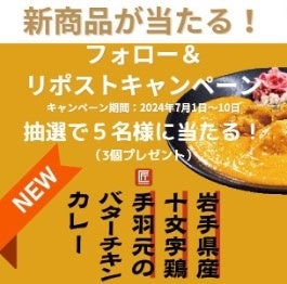■内容:ニュー・クイック公式Xのアカウントをフォローし、対象のキャンペーンポスト(投稿)をリポスト。リポストしてくださった方の中から、抽選で「岩手県産十文字鶏手羽元のバターチキンカレー」 3個を5名様にプレゼントいたします。