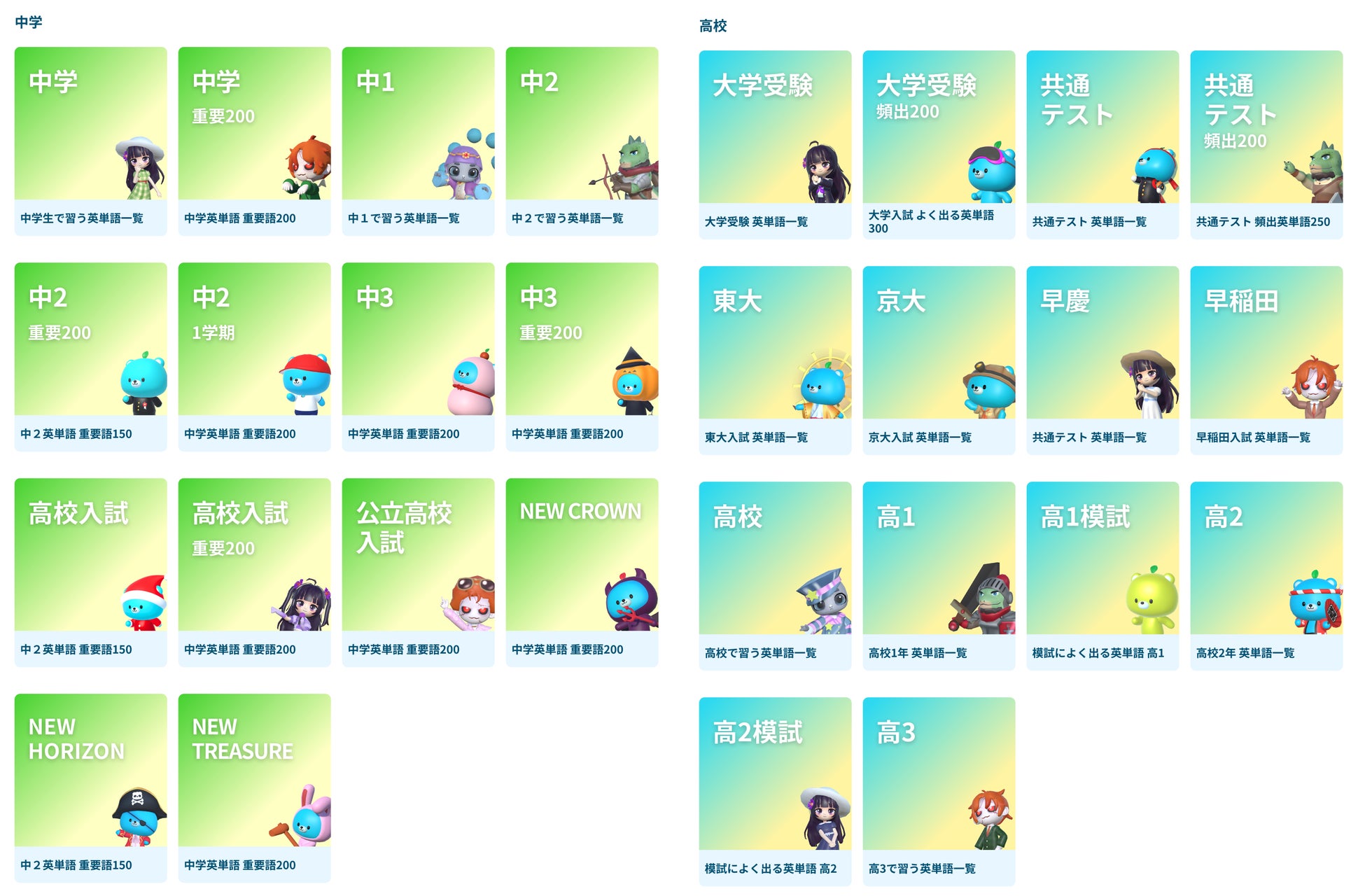 また、各英単語帳は、英単語アプリ「モチタン」でプレイすることができ、ゲーム形式で単語を覚えたり、AIによる記憶の管理機能が使えます。例えば、忘却曲線に基づいて忘れかけの単語だけを復習したり、よく間違える苦手な単語をまとめてくれたりと、さらに効率的な英単語学習へと繋げることができます。