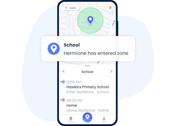 また、学校、公園、おばあちゃんの家などの周りにジオフェンシングを設定し、お子さんがこれらのゾーンに出入りしたときにアラートを受け取ります。