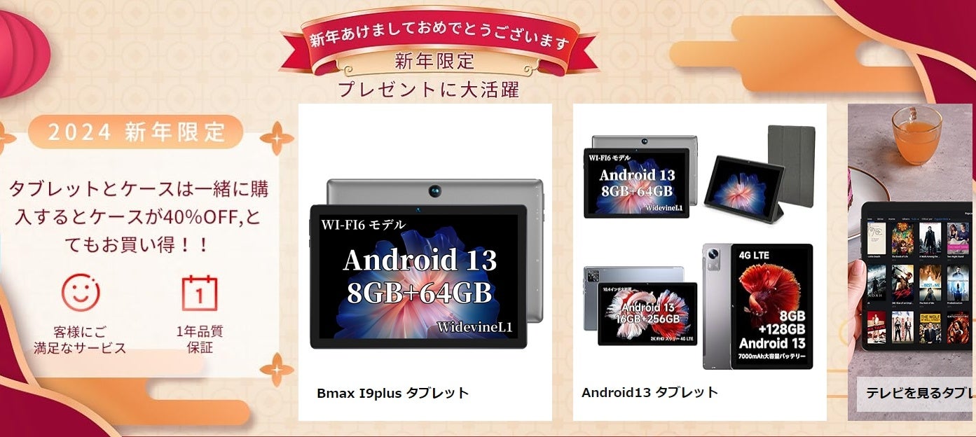 【新年祭開催決定】新年特典10.1インチタブレット最低価格9990円!Android 13 タブレット、1月1日から新年祭開催決定!