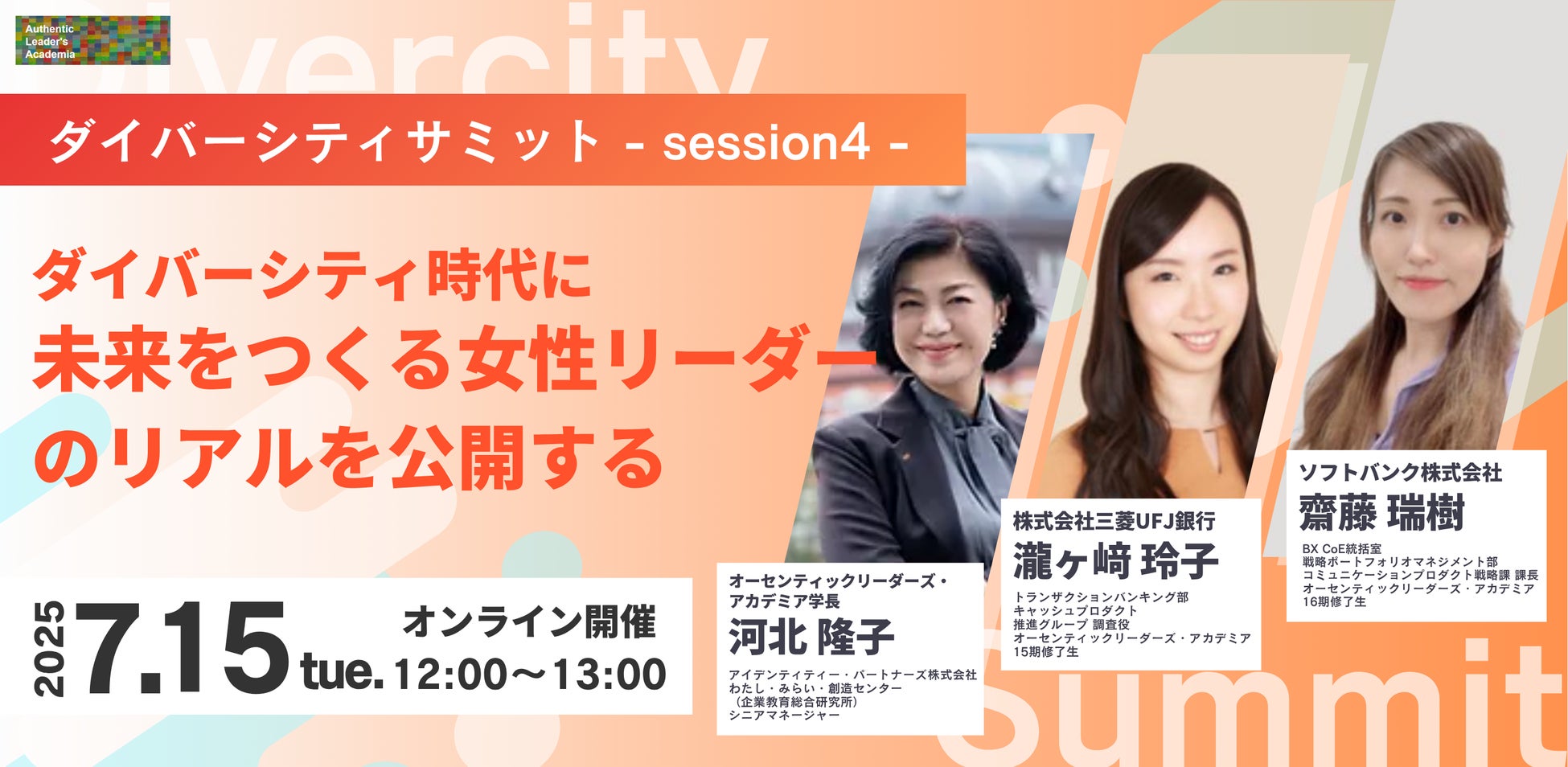 ダイバーシティ時代の女性リーダーのリアルを公開!ダイバーシティサミット -Session4-【7/15(火)オンライン開催】