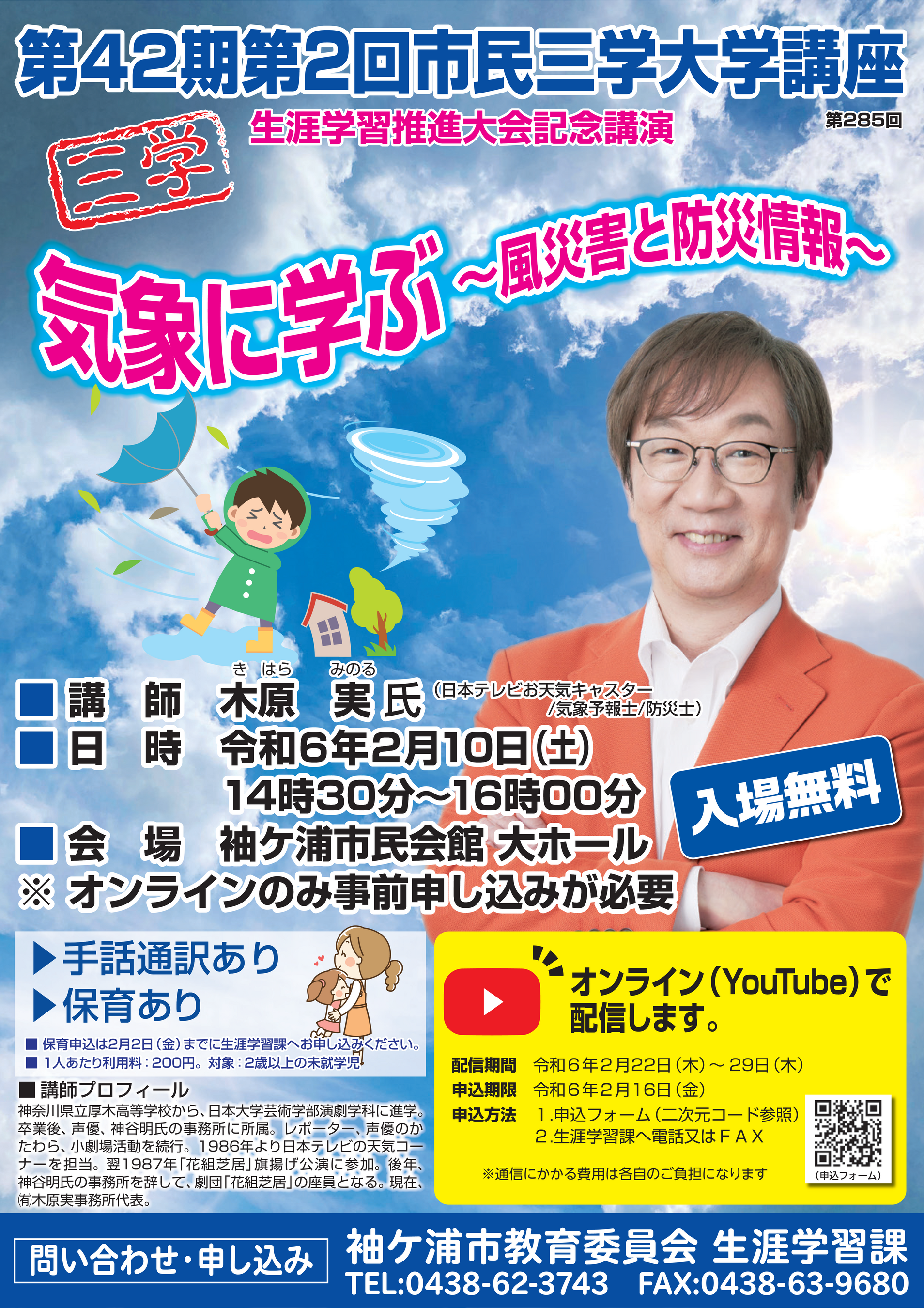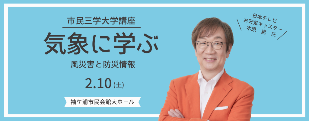 【千葉/袖ケ浦】日本テレビお天気キャスター木原 実 氏による「気象に学ぶ~風災害と防災情報~」講座を2月10日(土)に開催します!