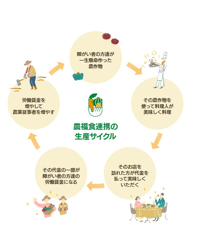 また、農業に関わった障がい者の方々は、おいしく美しく調理された農作物を見て誇らしく思うことでしょう。それは生産力や農作物の品質の向上に繋がり、さらには障がい者の雇用拡大や雇用継続に直結します。これにより、障がい者の方々の賃金UPや自立支援、そして新規就農者の増加が期待されます。