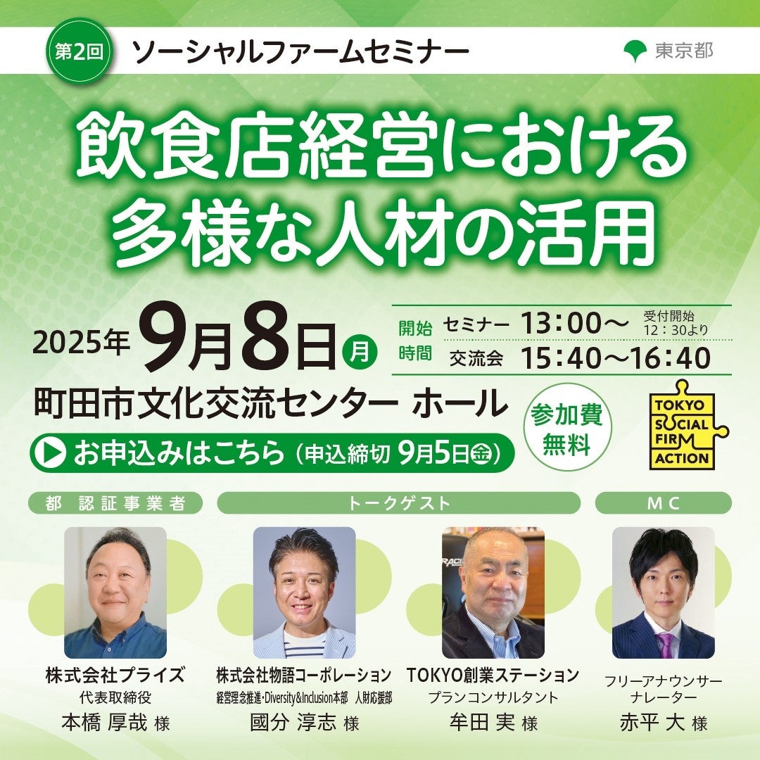 【東京都主催】第2回ソーシャルファームセミナー「飲食店経営における多様な人材の活用」を開催!