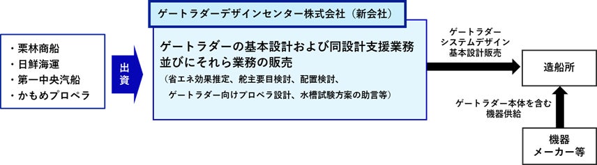 新会社への出資者として、保有船隻数最大級の船主である日鮮海運、外航オペレーターの第一中央汽船、ゲートラダーの共同特許権者であり国内唯一の同ラダーメーカーであるかもめプロペラの3社と、栗林商船が参画。各社の強みを結集し、基本設計業務を通じてゲートラダーの全世界的な普及加速を図ります。