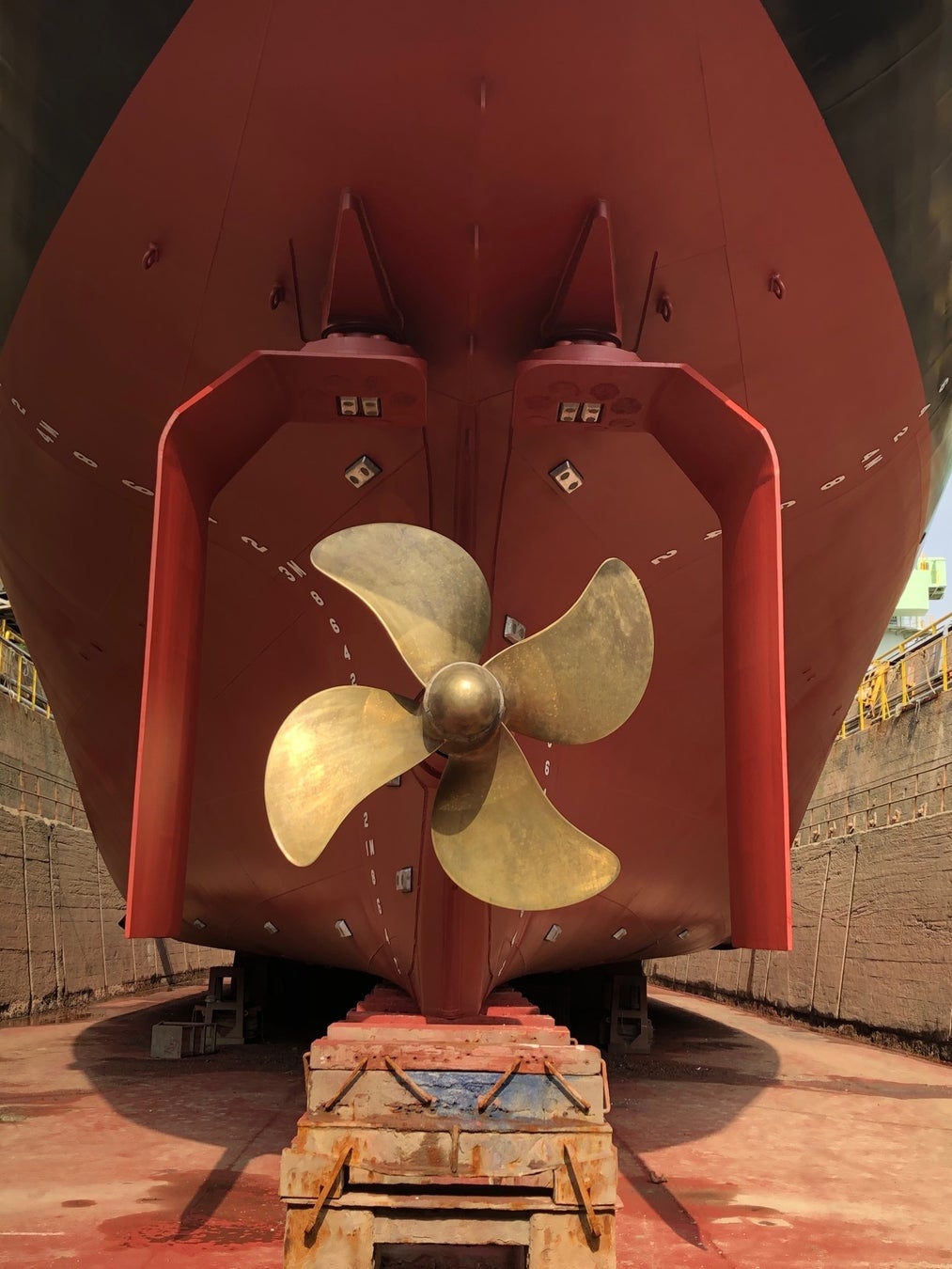 ゲートラダーは、栗林商船前会長の故・栗林定友氏が、ストラスクライド大学・佐々木紀幸名誉教授とともに発明し、栗林商船グループやかもめプロペラ等が特許を共同で保有している省エネ技術です。舵をプロペラの両側に装備することで抵抗を削減し、また非対称翼断面形状の舵板が生み出す推力によって燃費・推進性能を高めることが可能です。GHG(温室効果ガス)削減による環境改善への寄与が期待できることから、これまでコンテナ船、タンカー、貨物船、ばら積み船、自動車船、冷凍運搬船、セメント運搬船、練習船、漁船などの幅広い船種で国内外累計20隻以上の受注を重ねております。以前は中小型の内航船への装備が中心でしたが、とりわけ直近1年は国内外からの大型船への導入に関する引合いが急増しております。