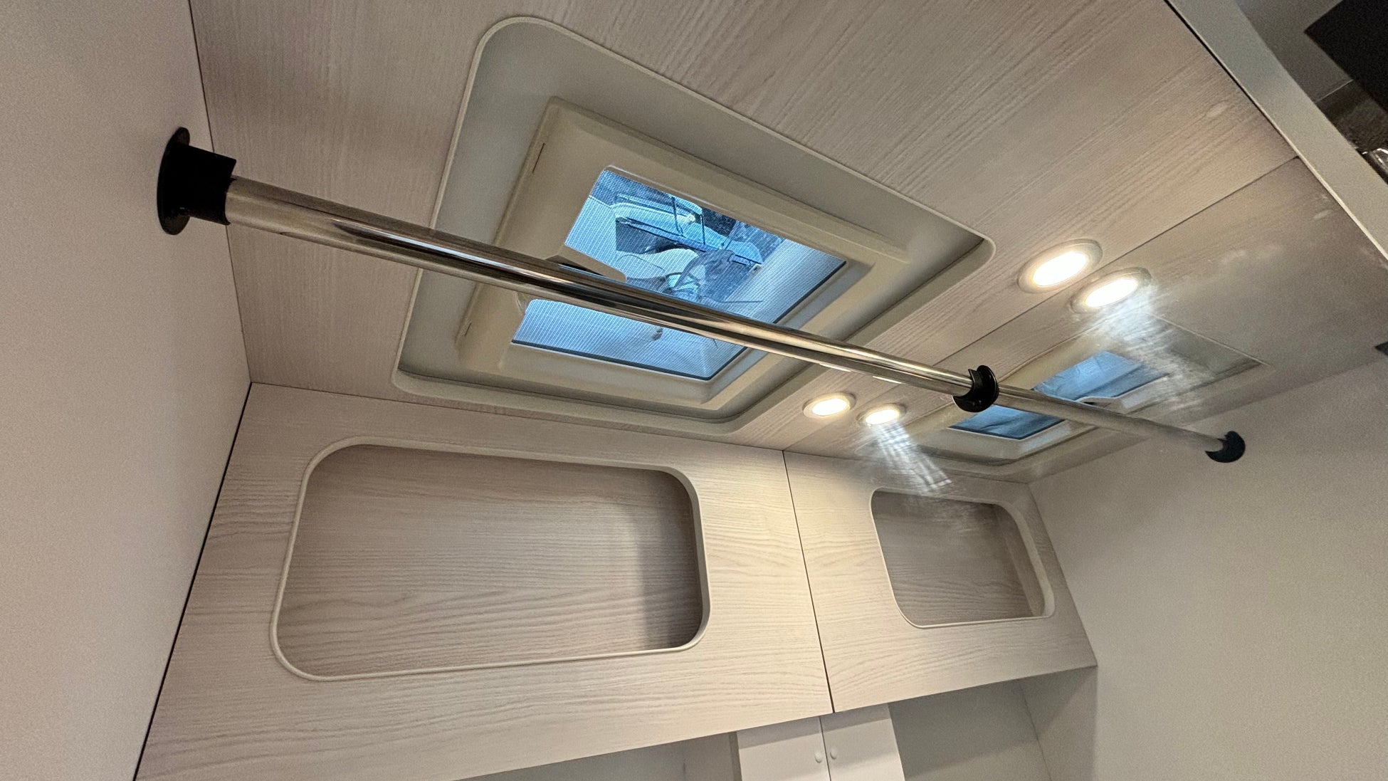 マルチルームに大きなミラー、収納棚、ハンガーバー、ソーラーベンチレーターを装備し、朝のメイクアップや濡れた衣類を乾かしやすい環境を整えました。マルチルームには外部アクセスドアも装備されているので外から濡れたものを出し入れするのにとても便利です。