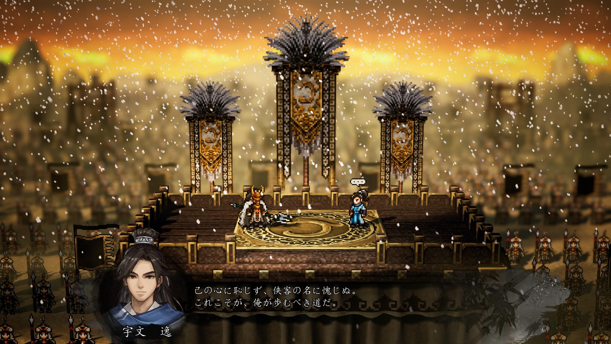 他のタイトルではほとんど描かれていない古代中国の世界観を、美しいドット絵で鮮やかに描写します。