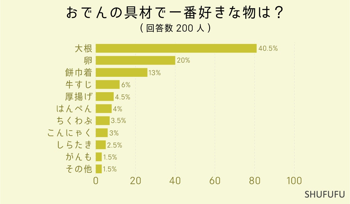 おでんの具材で一番好きな物に関しては、「大根」が1位でした。