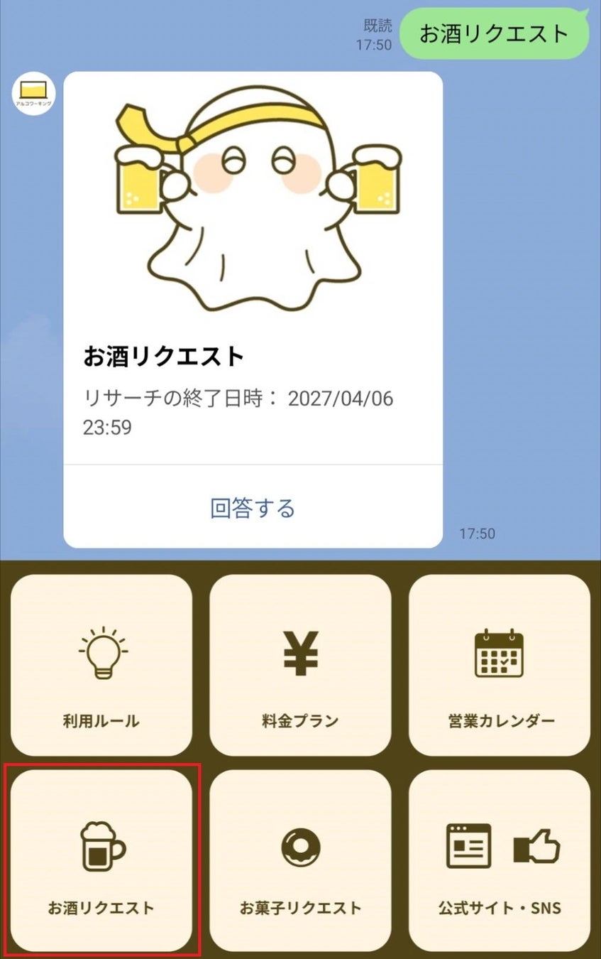 また、お酒リクエストも受け付けています。リクエストはアルコワーキング公式LINEからできます。