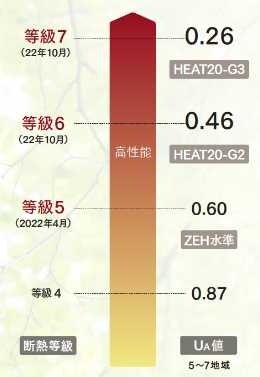 今まで高断熱住宅の代名詞でもあった「ZEH 水準」は「等級5」に相当します。