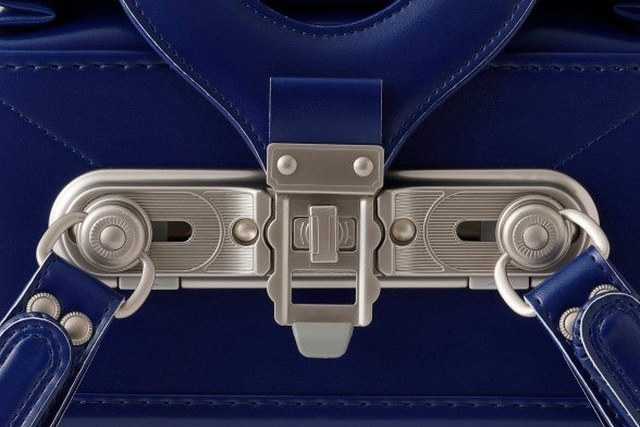 力のかかる部分に金具を使用し強度をあげつつ内側縫いにする事で、軽量化にも対応。