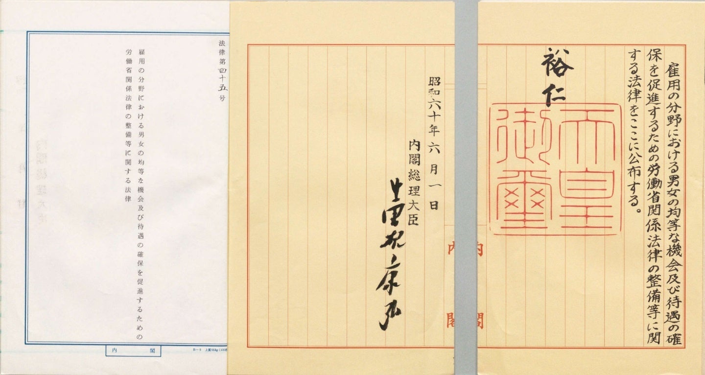 男女雇用機会均等法の公布原本を期間限定特別展示!