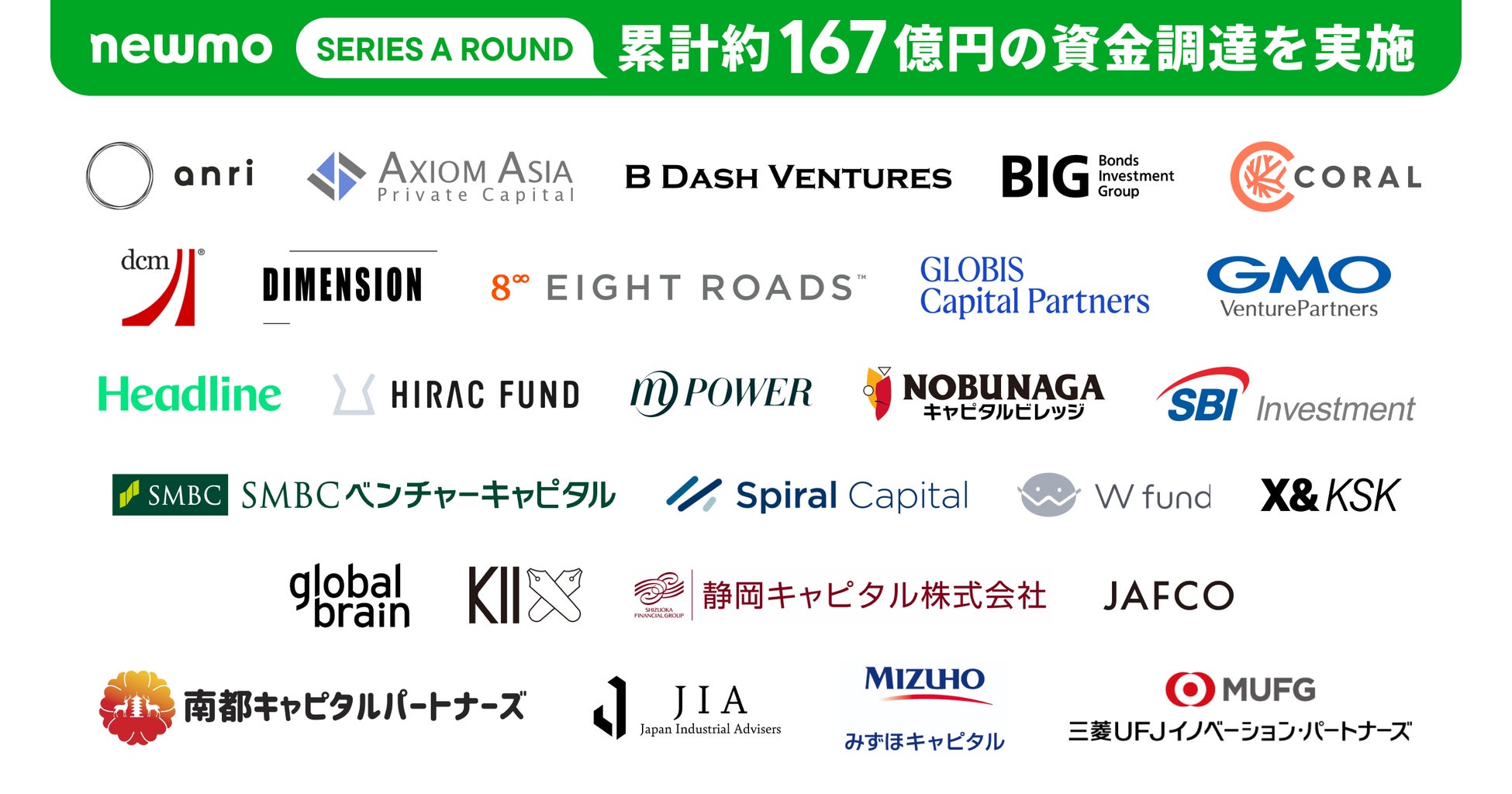newmo株式会社(東京都港区、代表取締役 青柳直樹、以下newmo)は、シリーズA追加ラウンドにおいて、既存投資家を含む複数の投資家を引受先とした第三者割当増資により約63億円の資金調達を実施することをお知らせします(※)。これにより、シリーズAラウンドの累計調達額は約167億円、創業以来の累計資金調達額は約187億円となります。