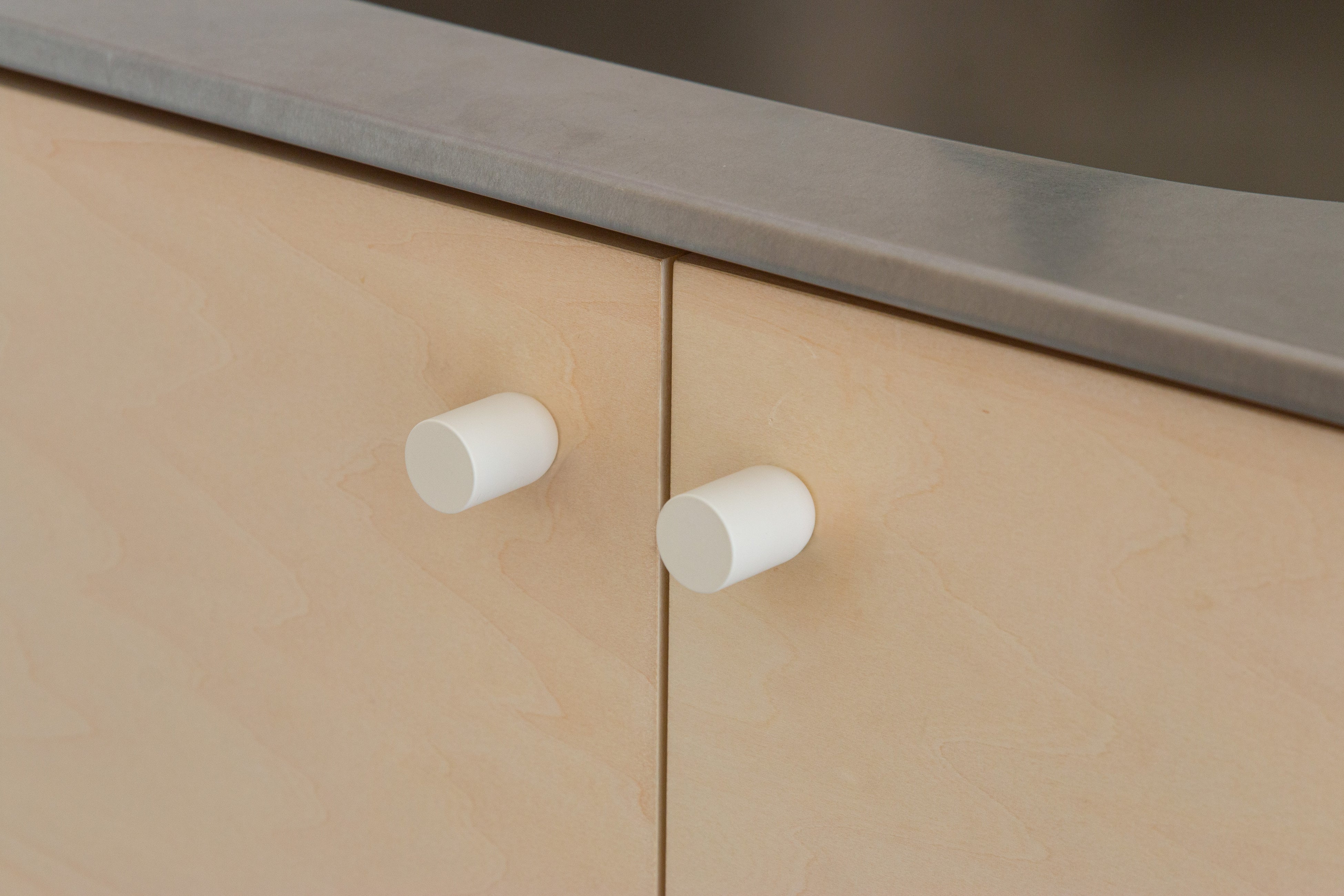 特徴的なフォルムのつまみは、機械の部品や、陶器の壺などをモチーフにデザインされたもの。ほどよい重さと滑らかな質感で、一見すると陶磁器のようにも見えますが、実は金属を削り出し、塗装で仕上げられています。