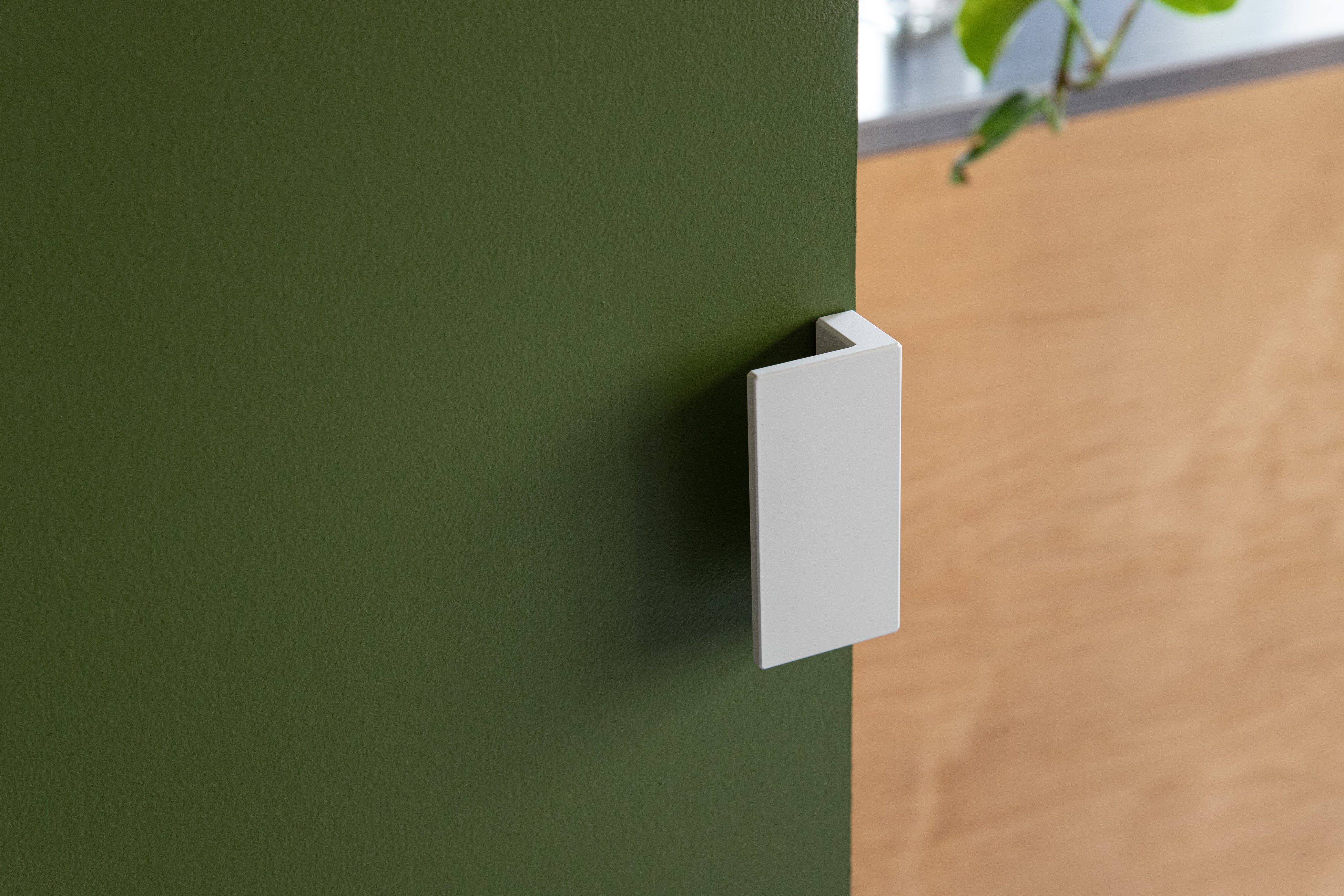 白い扉と合わせた時にバランスがいいのはもちろん、グレージュなどのくすみカラーとも好相性。木の面材と合わせた時もパキッとしすぎず、あたたかみのある木の色味になじみます。