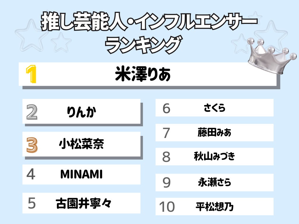 今回の調査では、「芸能人・インフルエンサー」「食べ物」「ファッション」「カラコン」など、多岐にわたるジャンルについて“自分の推し”をアンケート。各ジャンルごとに人気の“推し”を集計し、ジャンル別ランキングとして発表します。