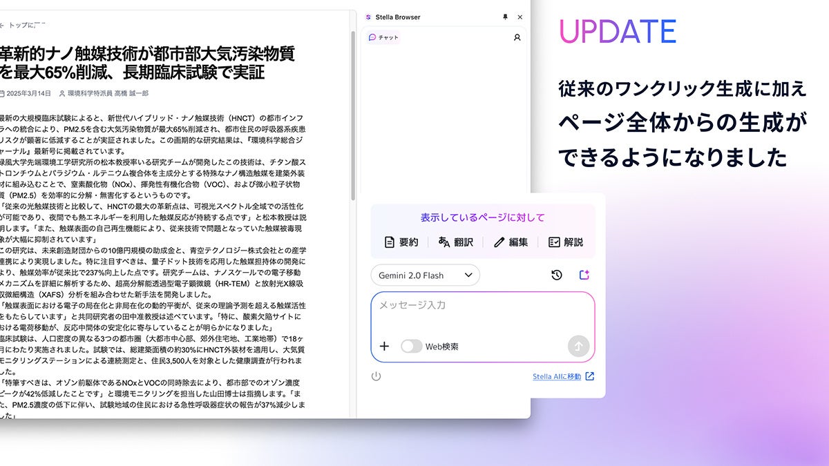 第一弾として、WEBブラウザでかんたんに「Stella AI」が使える拡張機能「Stella Browser」の本格提供を開始