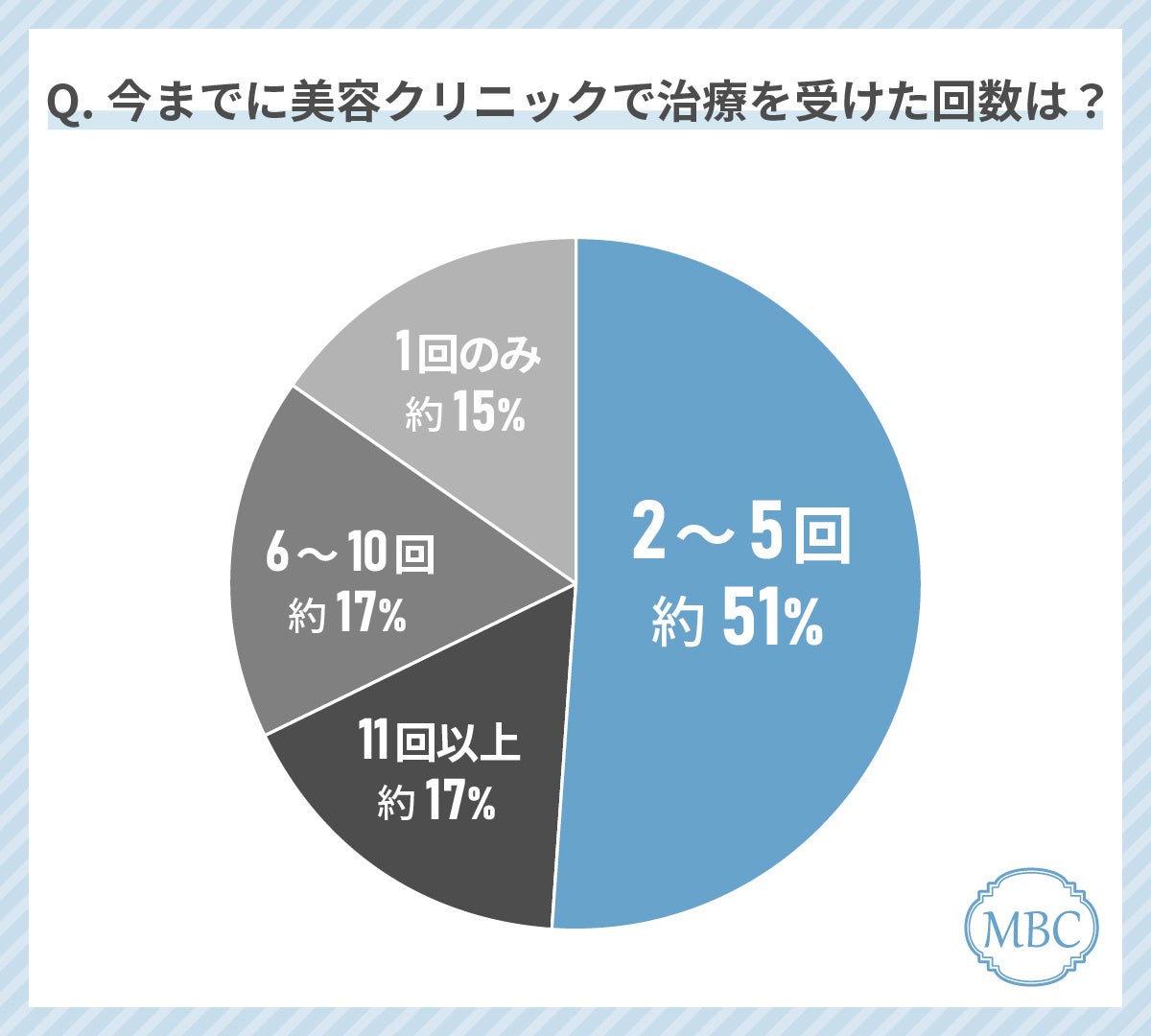 「今まで美容クリニックで何回治療を受けたことがありますか?」とアンケート調査した結果、
