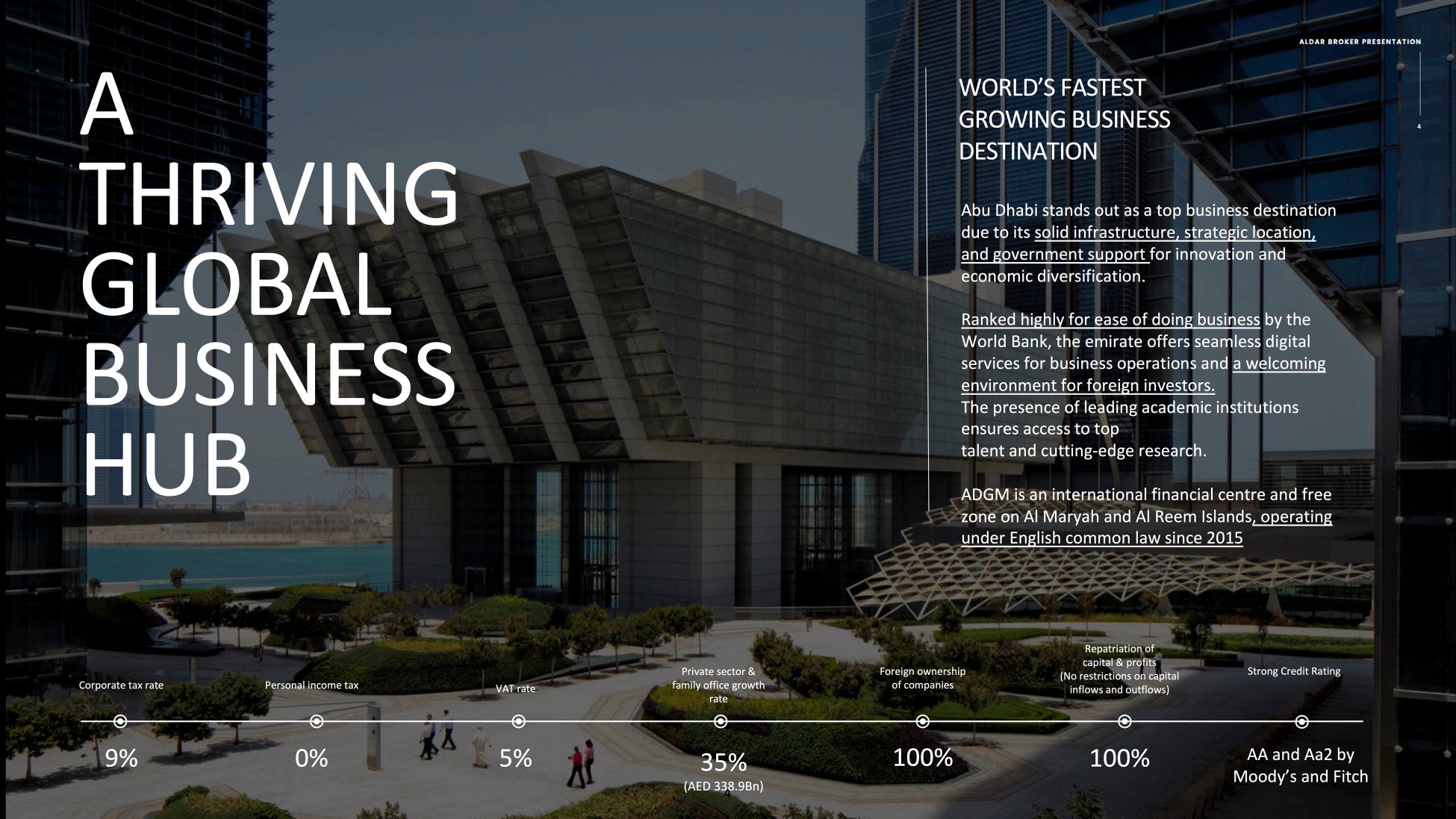本説明会は、アブダビ最大級の不動産デベロッパー Aldar Properties PJSC の担当役員来日に伴い実施されたもので、日本国内の投資家・企業経営者を中心に、3日間合計で延べ100名の方々にご参加いただきました。