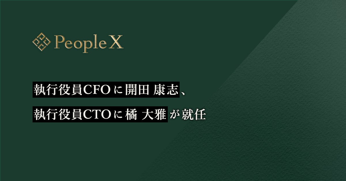 PeopleX、執行役員CFOに開田康志、執行役員CTOに橘大雅が就任