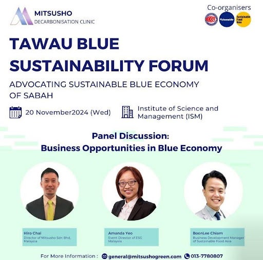 マレーシア・タワウ – 2024年11月20日 – スペースシードホールディングス株式会社(本社:東京都港区、代表取締役:鈴木健吾、以下「スペースシードホールディングス」)は、タワウブルーサステナビリティフォーラム(Tawau Blue Sustainability Forum)に参加し、日本の発酵技術がブルーエコノミーに貢献できる可能性について議論しました。このフォーラムはMisusho Sdn. Bhd.が主催し、Sustainable Food Asia Sdn. Bhd.、Visionwide Consultancy Limited、およびタワウ中華商会が共催する形で実施されました。フォーラムでは、炭素管理、再生可能エネルギー、農業やパーム油産業の進展などを題材に、サステナビリティに関する具体的な解決策について議論がなされました。