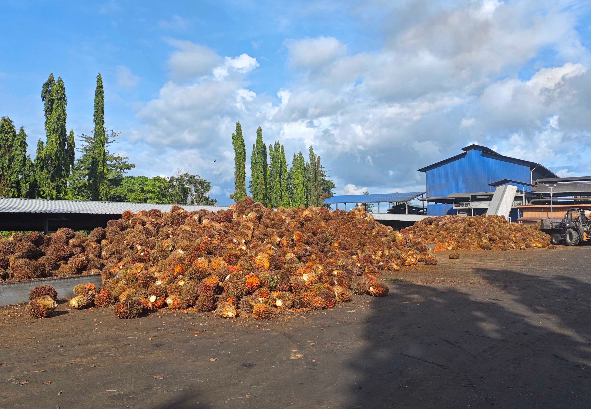 パーム果実加工施設:受け入れ作業や廃棄物処理方法の見学のため。