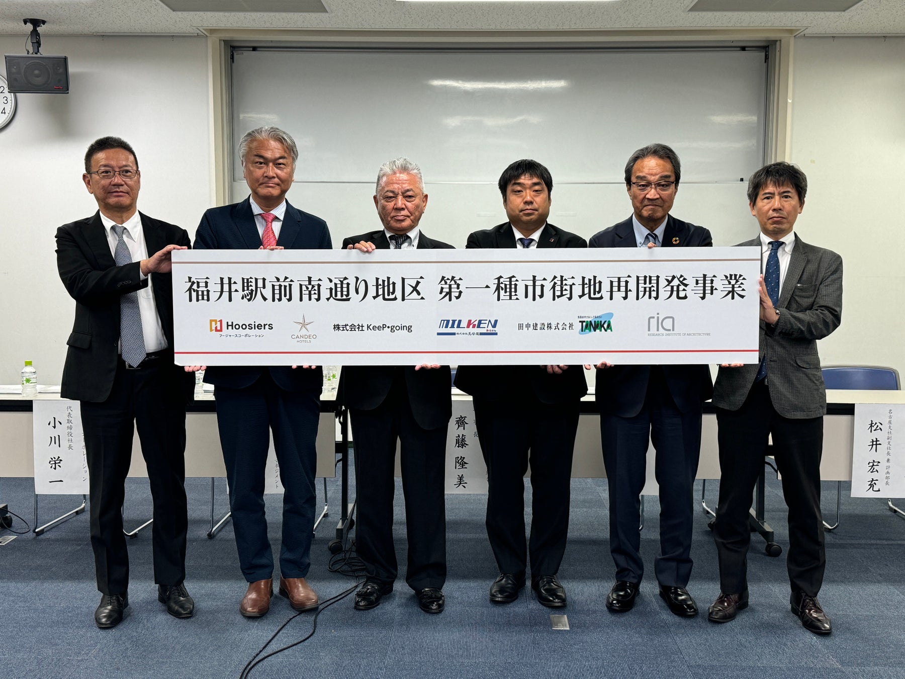 当社グループである株式会社フージャースコーポレーション(本社:東京都千代田区 代表取締役社長:小川 栄一)は福井県福井市において、「福井駅前南通り第一種市街地再開発事業」として新築分譲マンション・ホテル・商業・駐車場一体開発のプロジェクトに参画し、同事業の参画者である株式会社カンデオ・ホスピタリティ・マネジメント、地権者らによる法人株式会社KeeP・going、施工予定者である株式会社見谷組、田中建設共同体、事業コンサルタント業務及び設計業務を受注している株式会社RIAと記者会見を行いましたことをお知らせいたします。