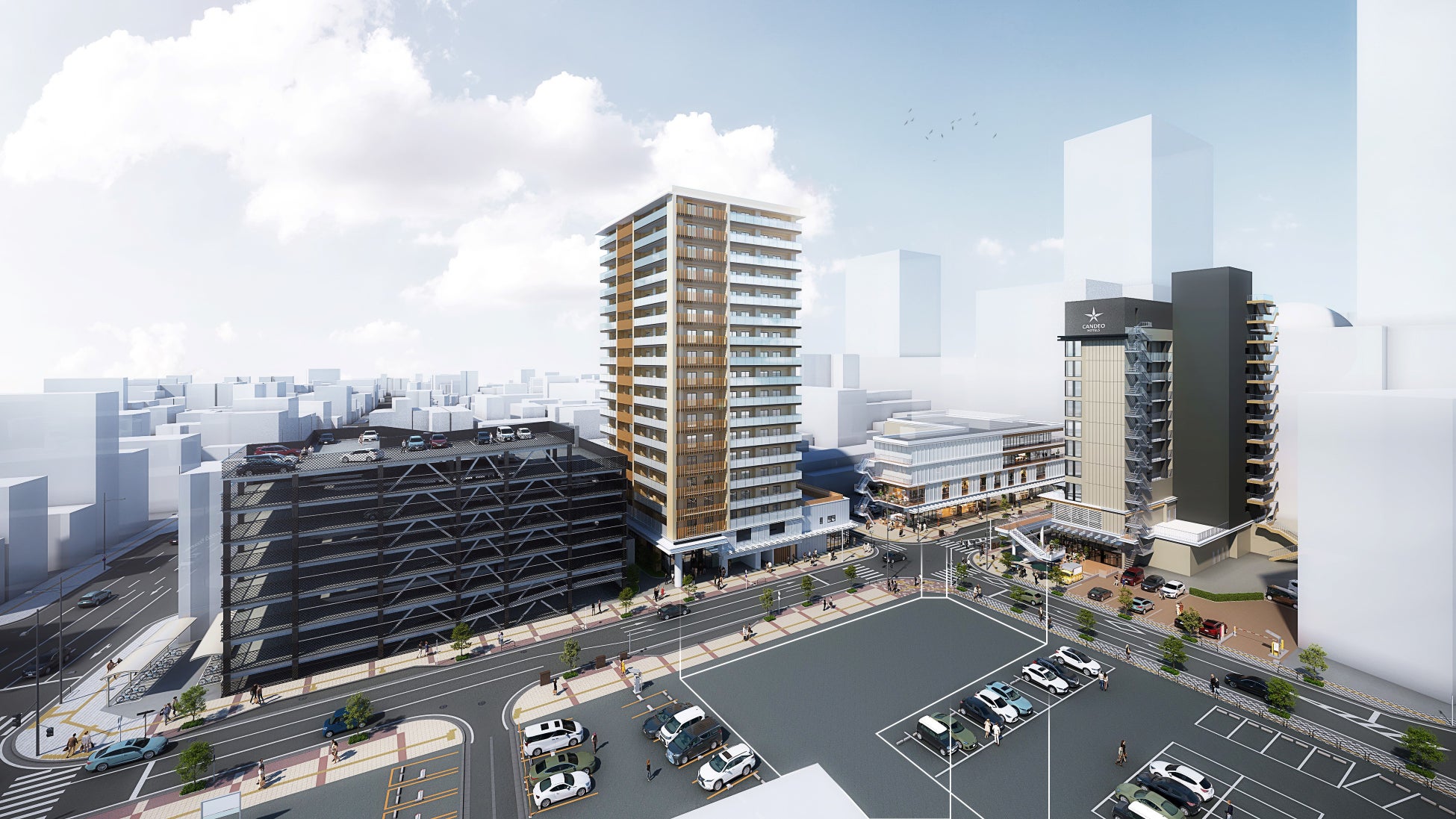 中心市街地の南の玄関口にふさわしい風格と魅力ある回遊拠点の創出を図るとともに、「駅前南通り」を軸に水平的に賑わいを繋げるとともに、周辺の再開発施設や商店街と連携した地域の生活拠点として再生を図るため、2024年7月29日に事業計画の変更認可を受け、翌7月30日に権利変換計画の申請を行いました。