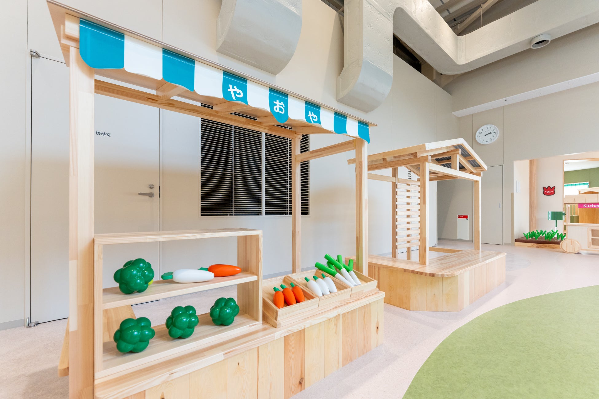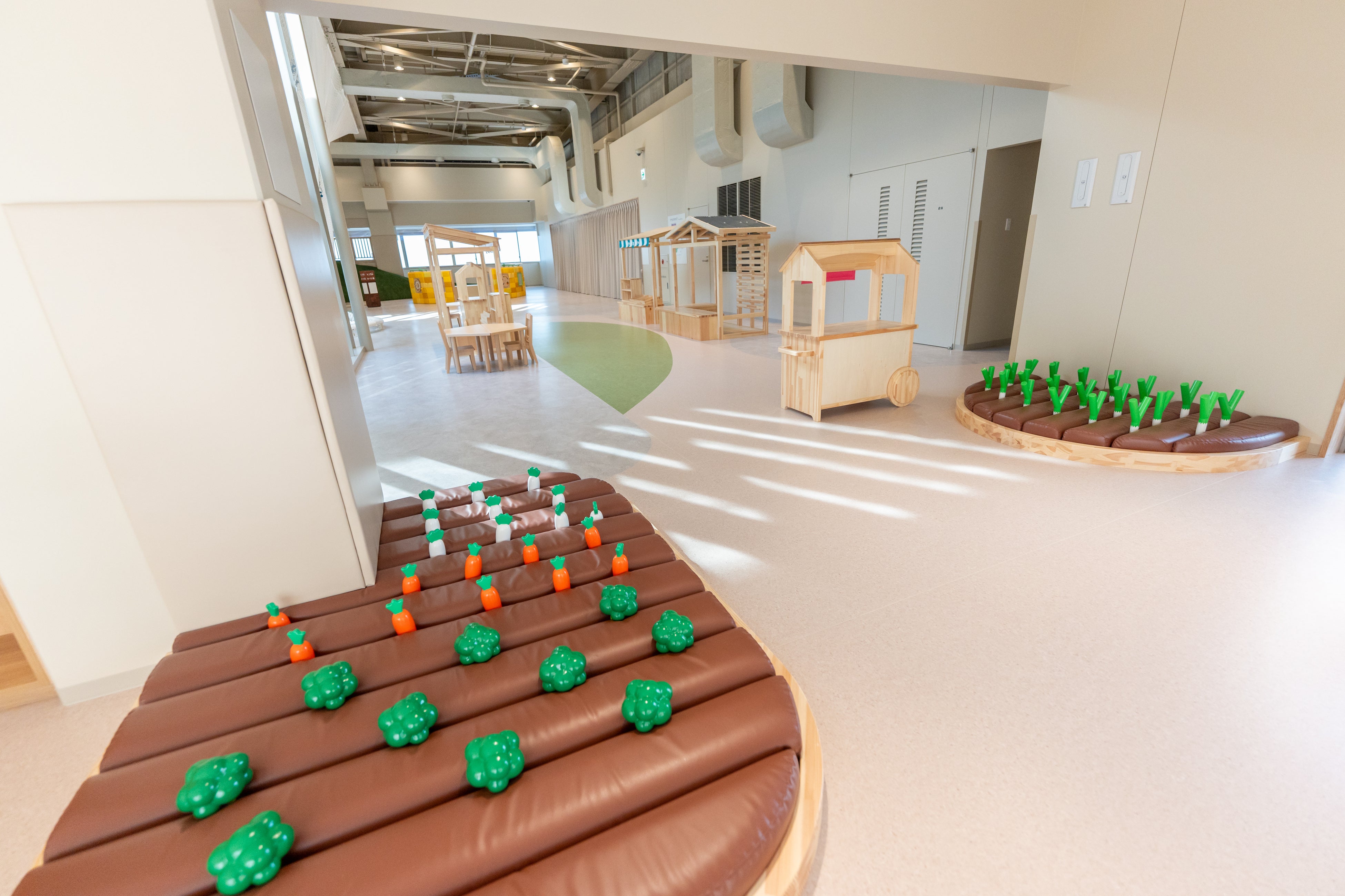 ごっこひろばでは、役割を決めて遊ぶ中で言語的知能や対人的知能に働きかけます。相手の気持ちを想像しながらコミュニケーションを取る経験は、社会性や協調性の発達にもつながります。ブロッコリーやネギを引き抜く「収穫体験」は、地域の特産物への関心を高めるとともに、野菜の数を数えたり色や形で仲間分けしたりする活動が論理・数学的知能を刺激します。さらに、野菜のかたちや特徴を観察し、自然の事物への気づきや分類する力を育む博物学的知能にも働きかけます。こうした体験全体が、子どもの探究心を豊かに育みます。