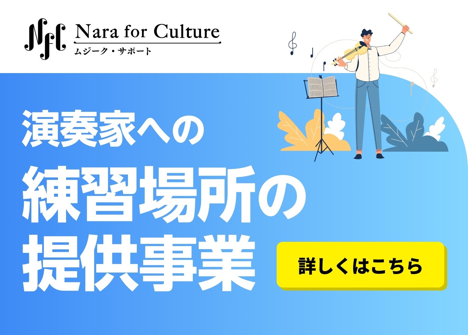 その一環として、下記の通り、奈良県の県有施設を活用して練習場所を提供することにより、演奏家の音楽練習をサポートします。