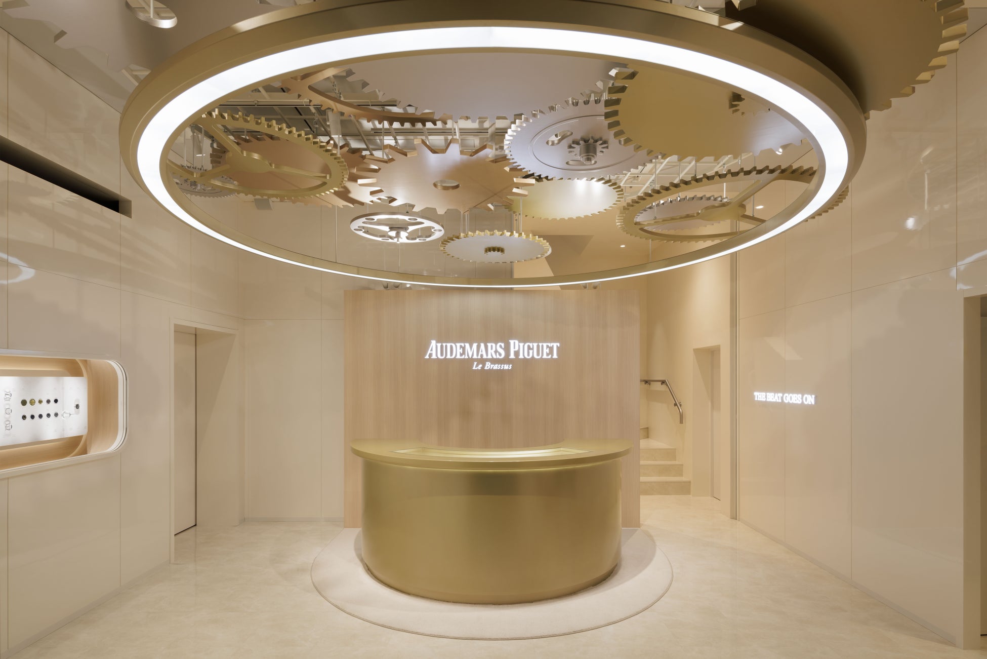 メゾンの豊かな150年の歴史をご紹介する「時のギャラリー」では、創業以来家族経営を貫くオーデマ ピゲが大切にする“家族”“人”をテーマに、写真やアーカイブ資料のレプリカ等を展示。まるでムーブメントの中に入ってしまったような錯覚を覚える「機械のひみつ」の中央に設けられた円形カウンターでは、ひとつのムーブメントがどのような工程を経て一つのムーブメントに成るか、一連の製作工程を展示。機械式ムーブメントの仕組みや、メゾンが誇る手作業によるケース等の装飾方法を技術スタッフがゲストに直接ご説明することで、如何に多くの工程を経て、オーデマ ピゲが誇る美しい時計が作られているのか、機械式時計の“ちいさな宇宙”の世界に触れていただくことができます。ジュネーブのVR制作会社、ドリームスケープ社とのコレボレーションによるファンタジックなVR体験が楽しめる「アイデアの旅」では、最先端のフルトラッキング技術を活用し、ゲストを“ワンダー(驚き)”の世界へと誘います。最新モデルや貴重なアーカイブピース15点を含む常時約50本の時計を展示する「デザインの金庫室」では、時計を通じてオーデマ ピゲの技術と美学の変遷を感じることができます。時計愛好家から時計の知識がない方まで楽しめるコンテンツが充実し、ブランドのクラフツマンシップと革新性を五感で味わえる空間です。
