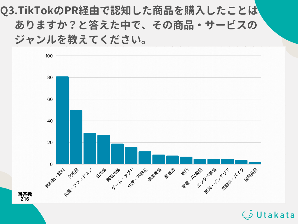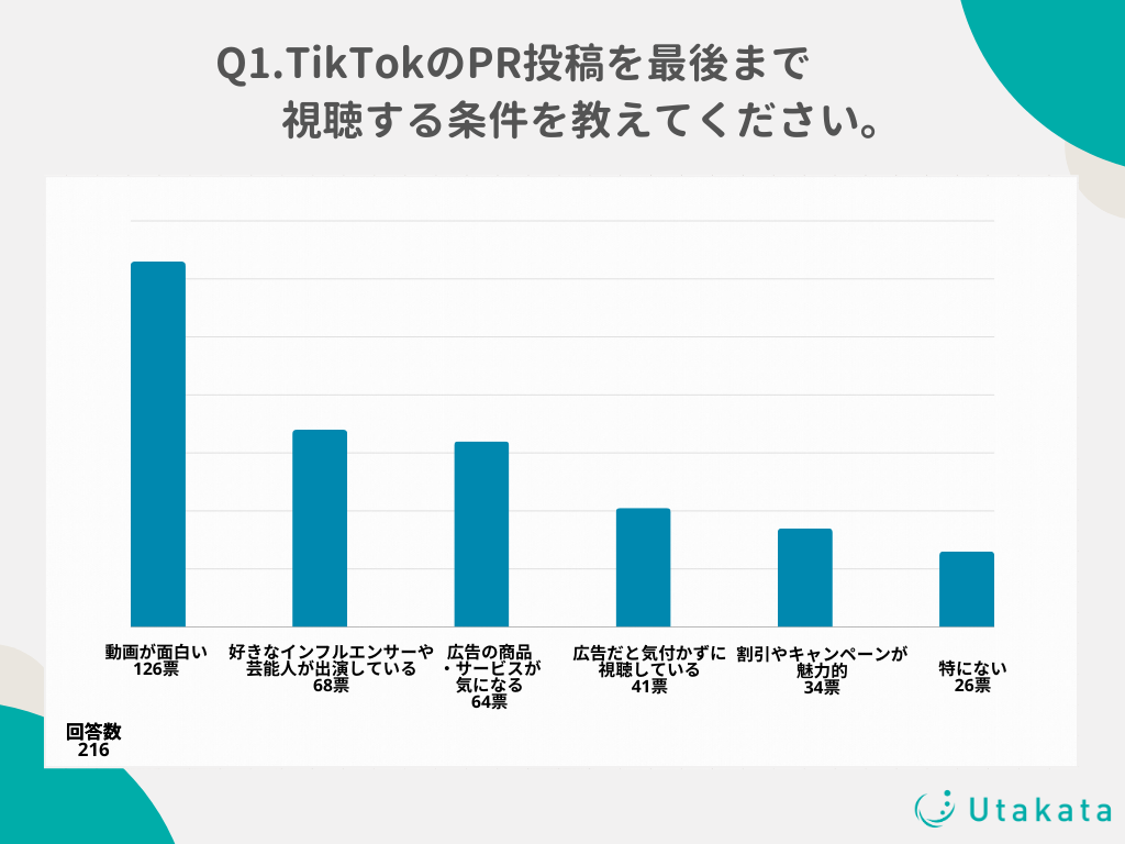 ショート動画SNSの運用やインフルエンサーキャスティングを行う株式会社Utakata(https://utakata.co.jp/)は、10代〜50代のTikTokユーザーの男女216名を対象に、「PR投稿」に関する調査を実施いたしましたのでお知らせいたします。