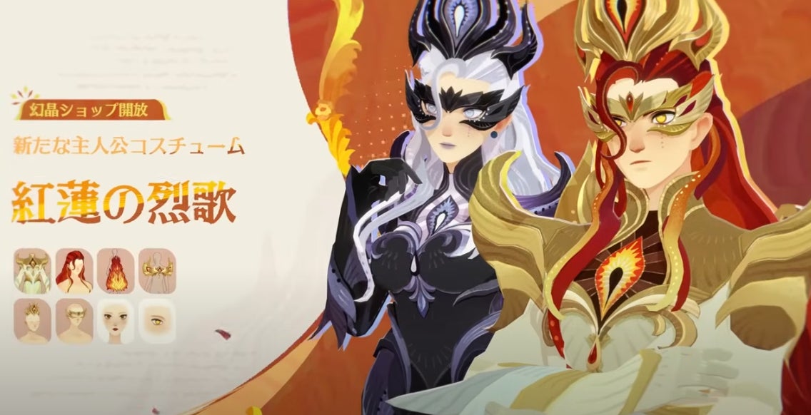 幻晶ショップ開放で、新しい主人公のコスチューム「紅蓮の烈歌」や、英雄タシーの新スキン「幻夜の夢」が購入可能に! 個性的な衣装をまとわせれば、キャラクターの魅力も倍増!?