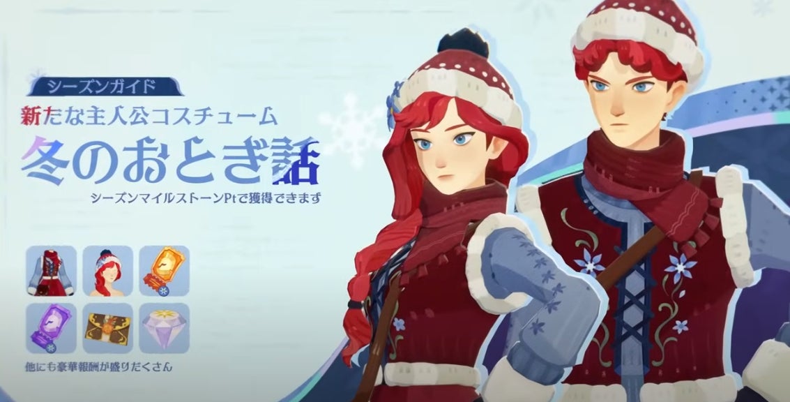 ショップやイベントに参加すれば主人公のコスチューム獲得可能!シーズンのマイルストーンポイントを貯めて、コスチューム「冬のおとぎ話」が獲得できます。