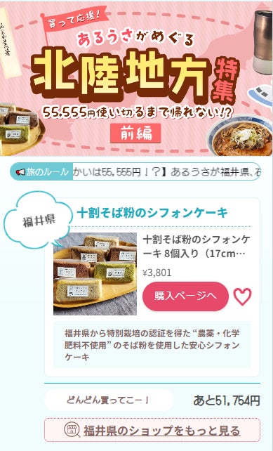 【北陸への復興支援】自宅から買って応援!あるうさ北陸オンラインショッピング旅~55,555円使い切るまで帰れない!? ~
