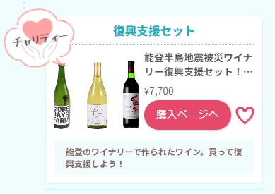 特集ページでは、購入いただいた代金を能登のワイナリーに寄付するチャリティーアイテムも登場しています。