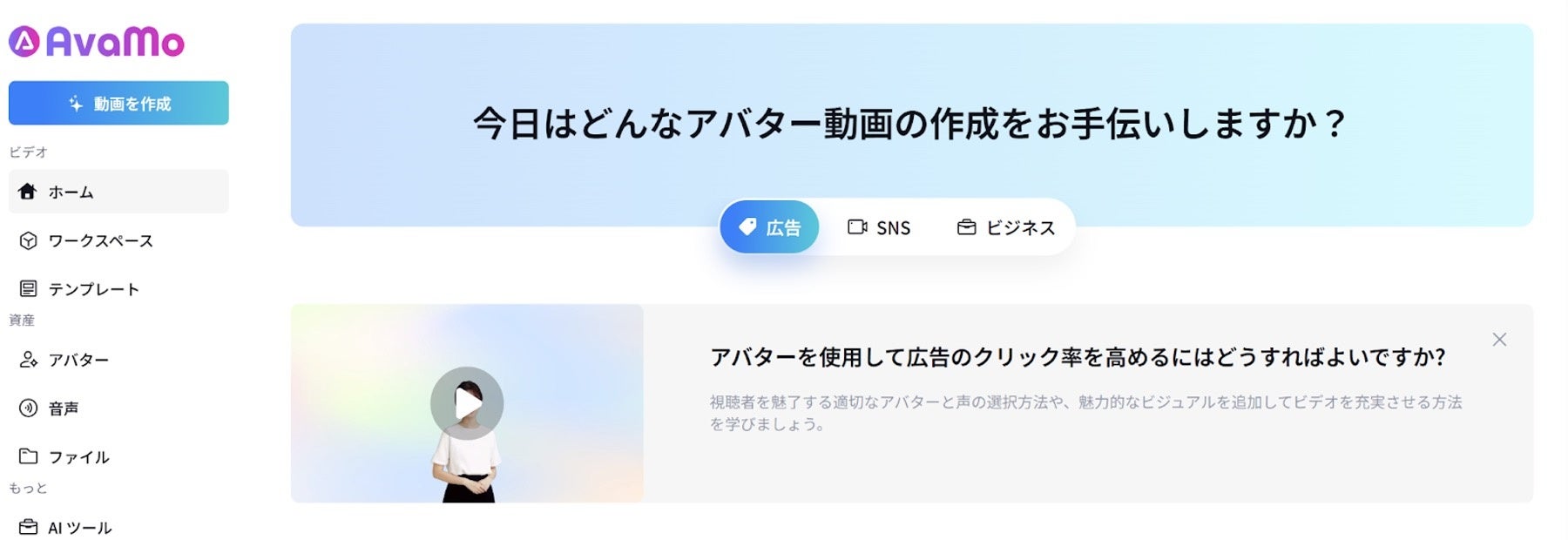 これらの特徴により、「AvaMo」は誰でも簡単に、プロ品質の広告・ビジネス動画をAIで自動生成できる、日本市場に最適化した次世代の動画制作プラットフォームとして、新たな選択肢を提供いたします。