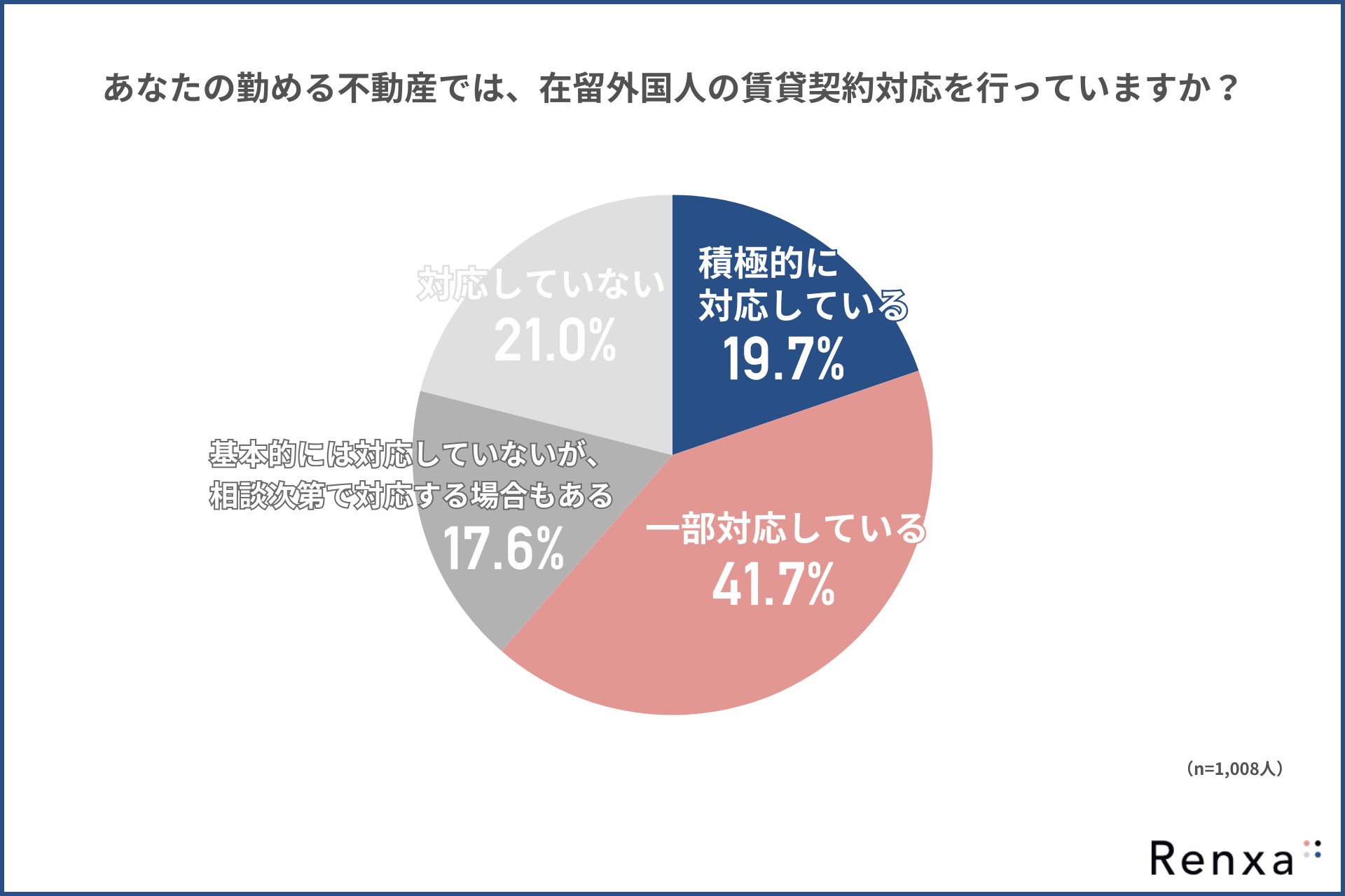 Renxa株式会社(所在地:東京都豊島区、代表取締役:坂本 幸司)は、不動産会社に勤めている方を対象に、「在留外国人の賃貸・ライフライン契約における課題」に関する調査を実施しました。