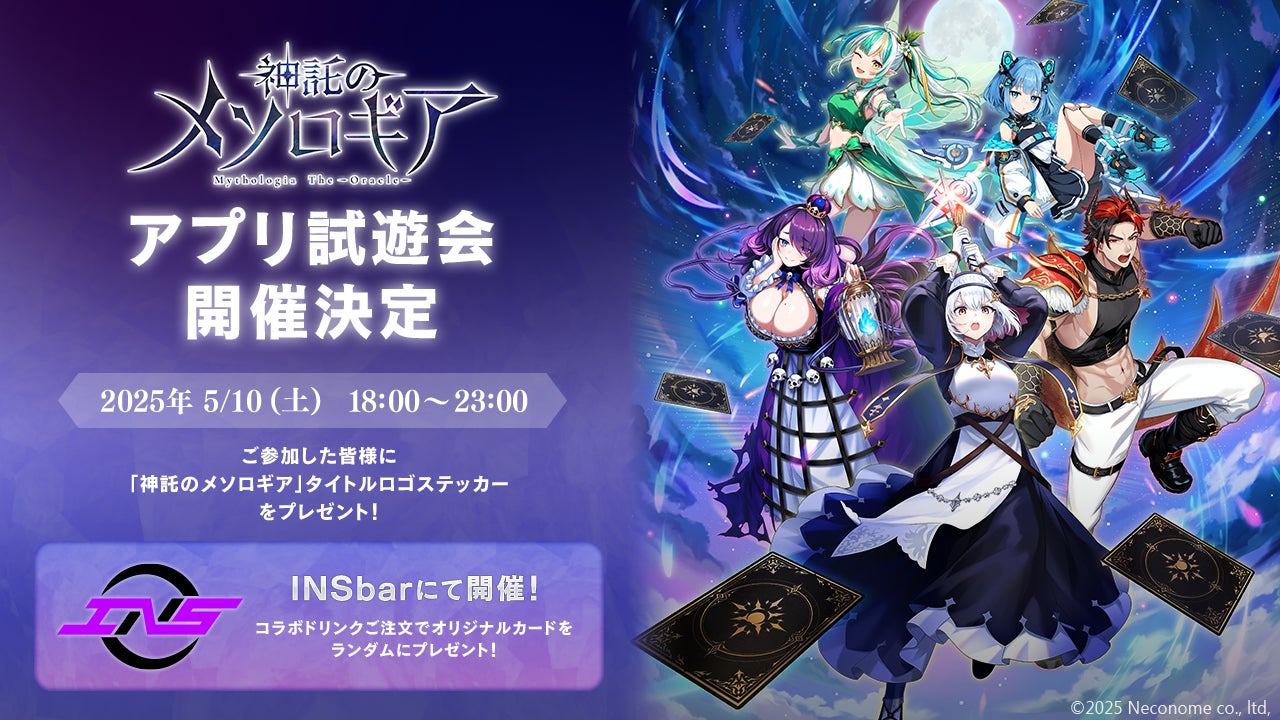株式会社ネコノメ(本社:東京都中央区、代表取締役:工藤ショーン)は、開発中のスマートフォン向けカードゲーム『神託のメソロギア』の自由参加型試遊会イベントを株式会社INS(本社:東京都墨田区、代表取締役:本橋壮太、以下「INSOMNIA」)の「INSbar」にて2025年5月10日(土)に開催いたします。
