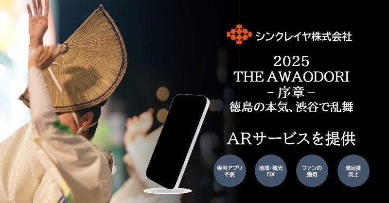 ケーブルテレビをはじめとする放送・通信に携わる事業者のソリューションプロバイダ シンクレイヤ株式会社(東証スタンダード:1724、代表取締役社長:山口正裕、本社:名古屋市)(以下、当社)は、阿波おどり未来へつなぐ実行委員会(徳島県徳島市)、ケーブルテレビ徳島株式会社(徳島県徳島市、代表取締役社長:梅田真司)、日本デジタル配信株式会社(代表取締役社長:高秀憲明、本社:東京都渋谷区)が共催するイベント『2025 THE AWAODORI - 序章 -徳島の本気、渋谷で乱舞 』へAR(Augmented Reality:拡張現実)サービスを提供いたします。イベントは2025年6月21日(土)に渋谷ストリーム ホールと渋谷ストリーム前 稲荷橋広場にて開催されます。