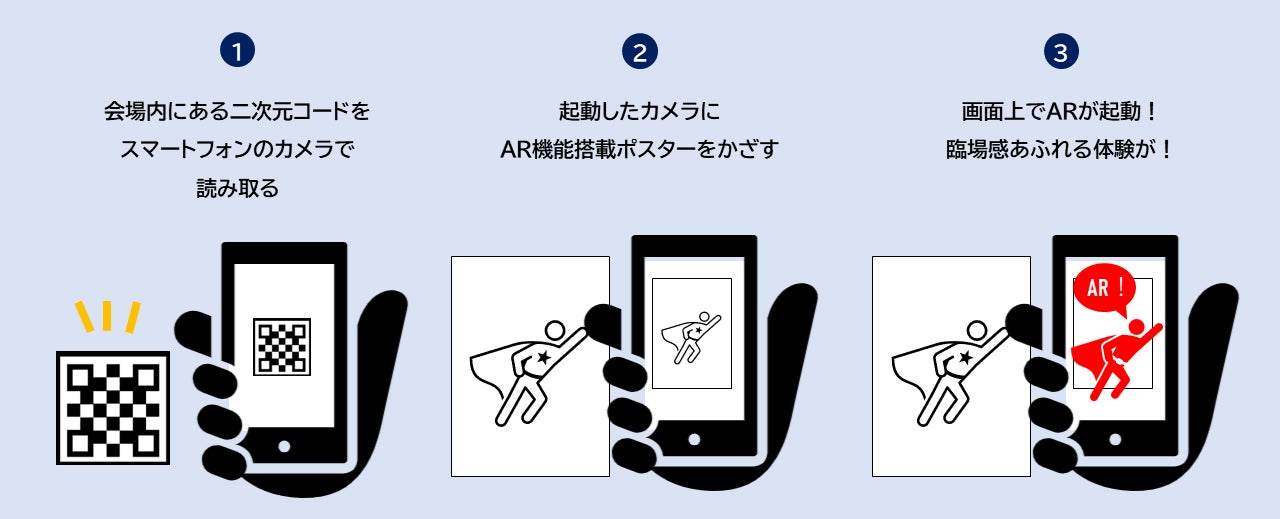 また、Webブラウザ上で動作するWebAR技術を採用しているため、ARの体験に専用アプリのダウンロードは不要です。どの世代の方でもスマートフォンひとつで手軽にご体験いただけます。