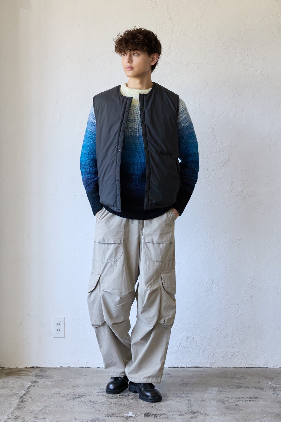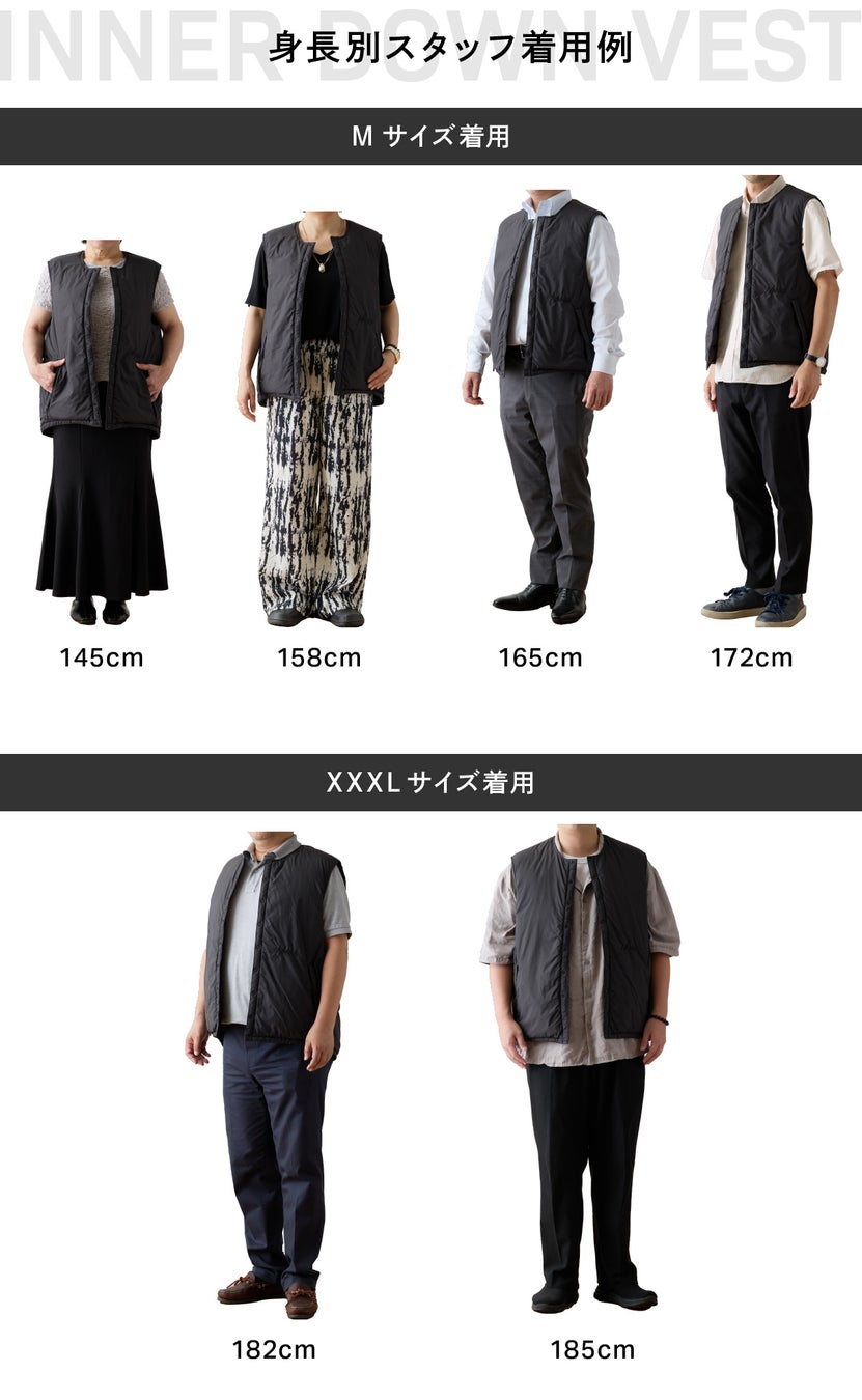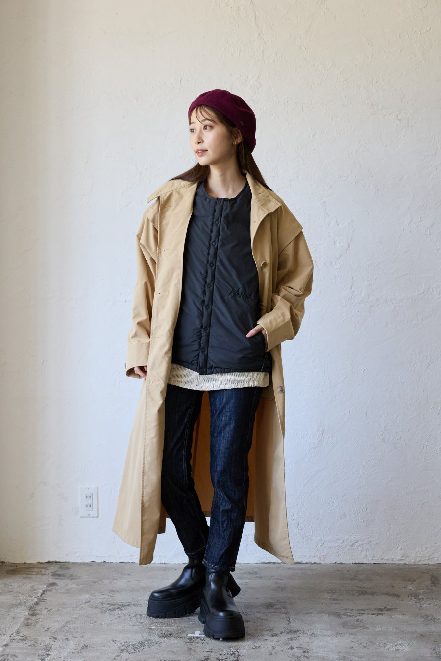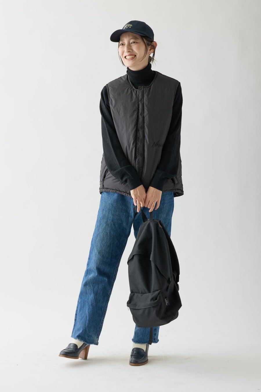 生地には、機能性と着回しやすいデザイン性を実現した撥水ナイロンを採用。また、中綿には国内で精製した環境に優しいリサイクルダウンを採用し、AQUAでしか手に入らない限定デザインのインナーダウンベストを作りました。