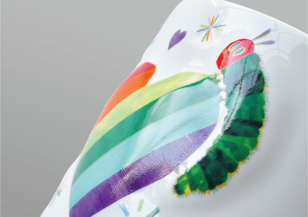 鉢の表面は、はらぺこあおむしのデザインに合わせて、ふっくら盛り上がったやわらかなレリーフ造形に。