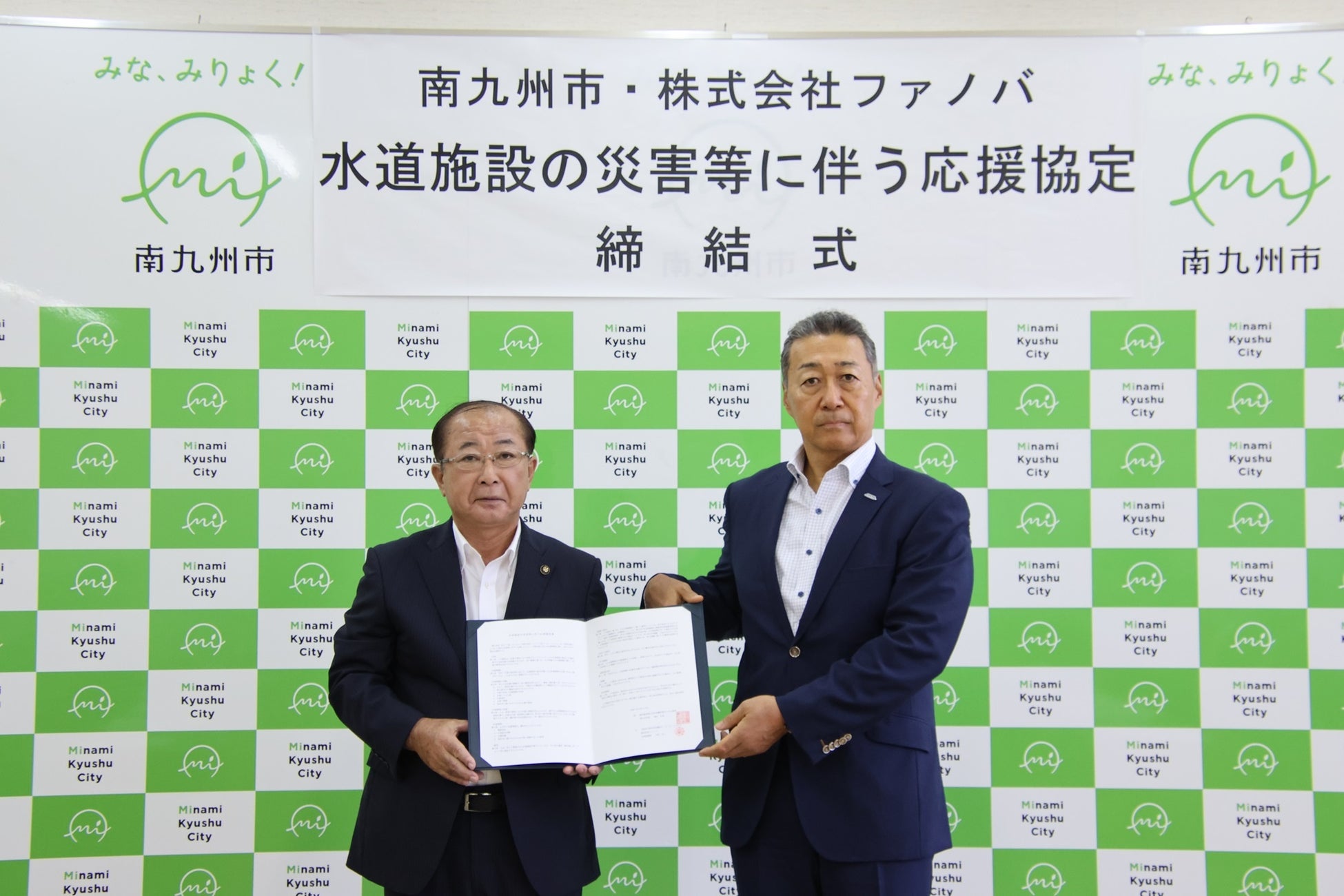 令和7年9月29日(月),南九州市は株式会社ファノバと「水道施設の災害等に伴う応援協定」を締結しました。
