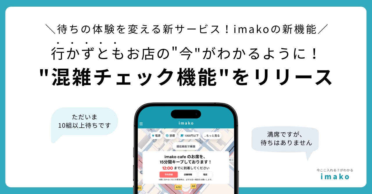 行かずともお店の"今"がわかるように!imako新機能 "混雑チェック機能"をリリース