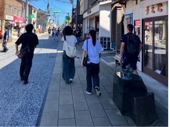営学生の案内のもと、参加者は地元中高生のおススメスポットを散策しました。