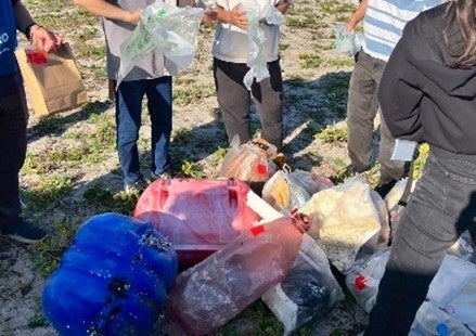 市ごとに異なるゴミの分別を体感しながら、35 分間で445kg、89 袋のゴミを拾い、海岸を