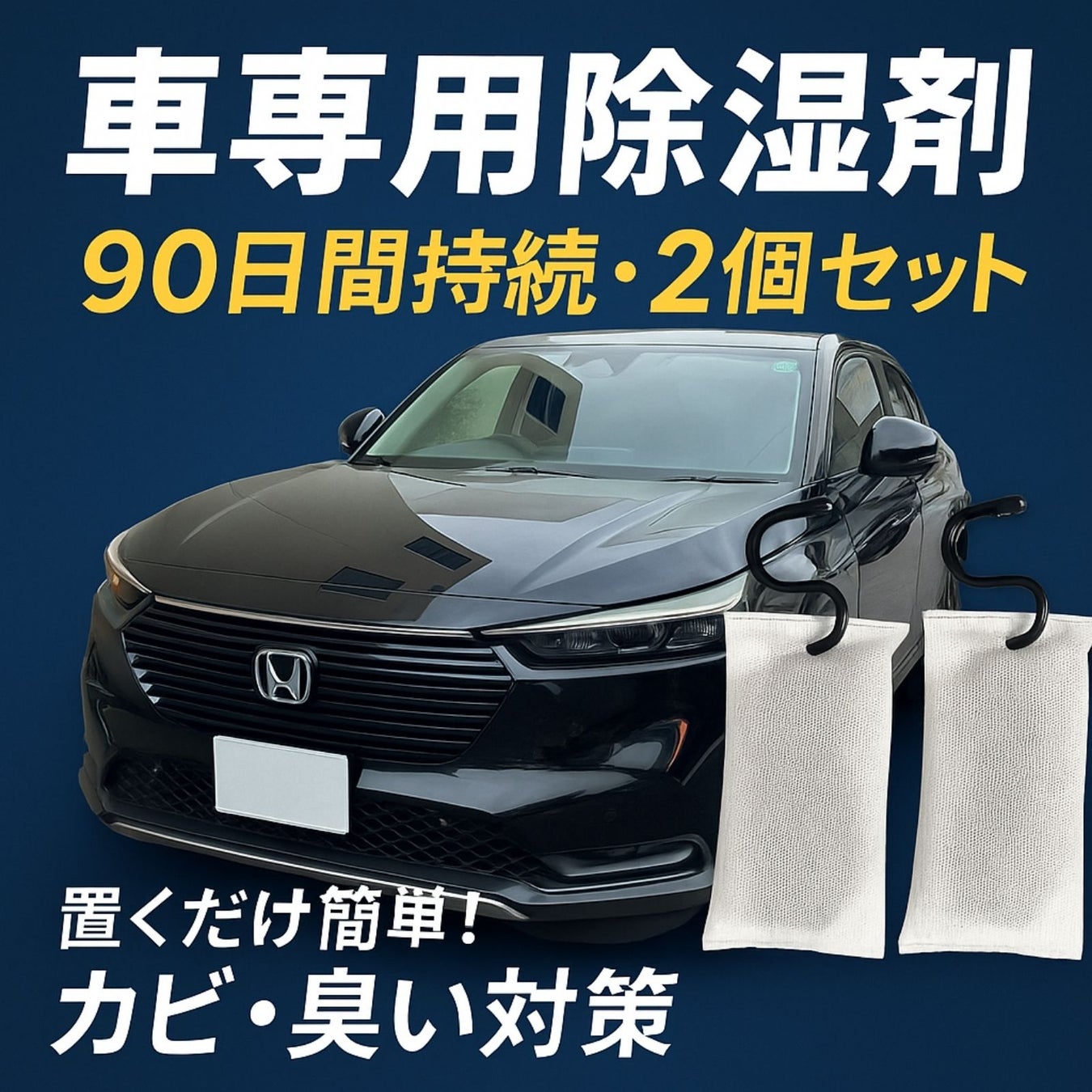 たった2袋で湿気・ニオイを同時ブロック、愛車を90日間クリーンキープ。